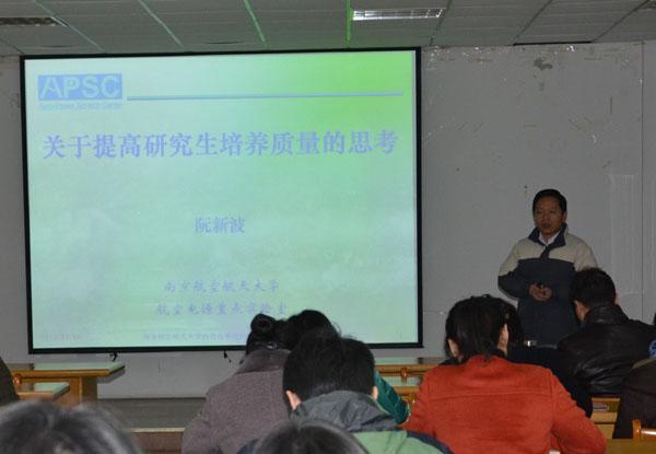 为进一步加强研究生导师队伍建设,提升硕士生导师指导水平,保证研究生培养质量和研究生教育工作的管理质量,按照学校研究生院关于导师培训文件精神,我院2013年硕士导师培训如期开讲,讲座不仅要求学院新导师以及未参加过培训的导师参加,同时也吸引了多位博导和民航学院葛红娟副院长及民航学院的新导师参加。培训由副院长赖际舟教授主持。