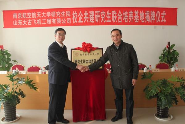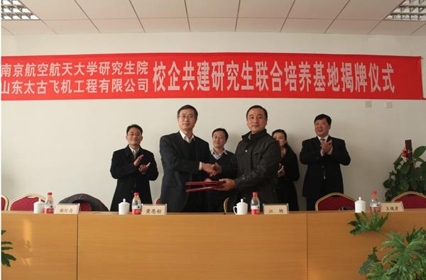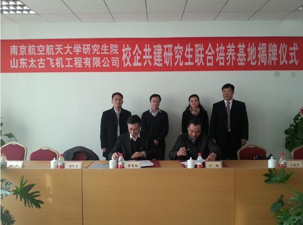 2013年12月6日,我校与山东太古飞机工程有限公司共建研究生联合培养基地签字暨挂牌仪式在济南顺利举行。出席仪式的有山东太古飞机工程有限公司总经理黄恩舫、副总经理杨光耀、培训部韩勇强经理、技术中心顾辉主任、技术工程部常城经理,南航大研究生院副院长江驹、同人漫画 副院长赖际舟、电气工程系副主任陈新以及公司所有领导和部分员工,签字挂牌仪式由韩勇强主持。