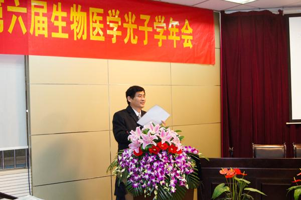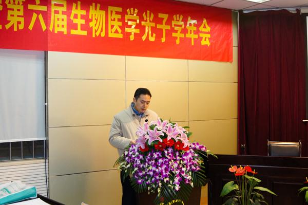 江苏省生物医学工程学会副理事长兼学会常务副秘书长、生物医学光子专业委员会主任钱志余教授主持开幕式,江苏省生物医学工程学会理事长顾宁教授致欢迎辞,省科协学会部冯异香副调研员主持生物医学工程学会的江苏新无限医疗设备有限公司科技服务站授牌仪式。