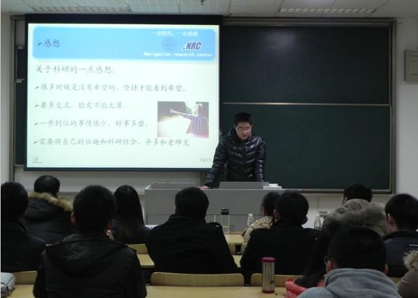 首先为现场同学进行讲座的任仁同学结合自己的科研经历,将自己的经验总结为“三个笔记本”(实验记录本、文献记录本、新想法记录本)以及“三个D”(Discussion、 Debugging 、Discover),他认为科研成功的关键在于记录点滴和抓住想法。紧接着做报告的是李洁同学,李洁同学有着丰富的数学建模经验,她结合自身经历讲解了有关数学建模的一些问题并号召大家一起去了解数学建模的神奇,在培养自己的数学思维、学会创新的同时也锻炼自己自学的能力和解决问题的能力。随后出场是我院刚刚获得校“天宫杯”研究生创新实验竞赛二等奖的万骏炜同学,他回顾了自己自研究生一年级以来的科研历程,并结合自己参加“天宫杯”研究生创新实验竞赛的感想,告诉大家做科研最重要的就是“相信自己,永不言弃”。接下来报告的是赵阳同学,赵阳同学虽然只是研究生一年级的同学,但已经有过参加国际能源大赛的经历。赵阳同学表示,这次参加国际大赛的经历让她深刻体会到机会来之不易,遇到机会就要牢牢抓住。最后作报告的许德智博士有着丰富的科研经验,他以师兄的身份从如何阅读文献、怎样选题和如何做研究三个方面为现场同学提出了一些建议。许博士的报告内容细致而实用,提出的问题也很有针对性,现场同学都备受启发。