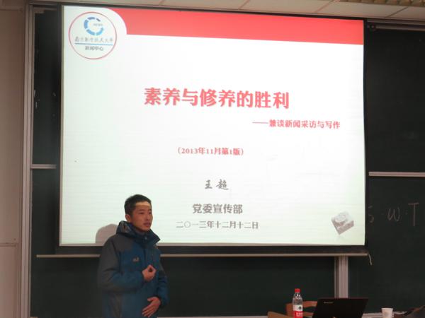 12月12日,同人漫画 第十三期S.W.T.工作坊之新闻采访与写作在将军路校区举行。本期工作坊由南航报编辑部主任王超担任主讲,院团委书记季娟作为嘉宾出席了本次活动。参加本期工作坊的还有2012、2013级的学生骨干。 在对南航同人漫画进行简要介绍后,王超从政治家办报、历史家办报、新闻家办报3个话题引入对新闻工作价值观的探讨,强调好的新闻采写缘于正确的新闻价值观的确立,并简要阐述了“什么是新闻”“新闻基本特征”等基础新闻理论观点。在新闻采访业务指导环节,他指出,“七分跑,三分写”是新闻记者的重要素养,并引用20世纪初著名记者黄远生的“四能说”,阐述新闻记者应着重培养的四种新闻采写技能。针对同学们的具体采写需求,王超重点讲解了“消息”的写作要领,并以丰富的实例向同学们做了详细阐述。 在互动环节中,王超对活动现场同学提供的近期3篇新闻稿进行了点评和修改,并对同学提出的问题进行了一一解答。 培训最后,王超与大家共勉道:“我们都是南航的新闻工作者,讲述南航‘好’故事,传播南航‘好’声音是我们共同努力的方向”。
