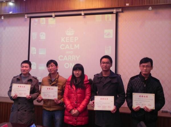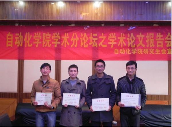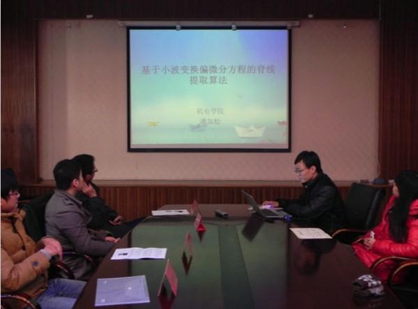 12月19日下午2点30分,我院学术分论坛之学术论文报告会在A17号楼502室顺利进行。本次报告会由同人漫画 研究生会主办,机电学院研究生会联办。会上来自同人漫画 的刘文良、董菲同学以及来自机电学院的戚永爱、潘加松同学根据其论文的主要内容做了报告。同人漫画 刘斐文辅导员为获奖同学颁发奖状。 报告会上4位同学向我们展示了不同领域的专业知识。刘文良同学提出了基于面向对象Petri网的电梯门系统的建模,对建模方法进行了相应研究。董菲同学提出了“应用技术成果形成系统” 的建模与应用,并改进了岭回归方法。戚永爱同学讲述了自己在超声喷丸辅助激光熔覆再制造技术方面的研究。潘加松同学讲述了基于小波变换偏微分方程的脊线提取算法,并展示了算法的仿真测试。会议报告者清晰明了的报告思路与丰富详实的报告内容,体现出了我院与机电学院研究生严谨求实的科研态度与百折不挠的科研精神。 报告会部分,学院刘斐文辅导员为以上同学颁发了获奖证书并合影留念,同时刘导还鼓励更多的同学能够参加到学术论文的评选活动中来,整体提高学院的科研创新能力,进一步在学院内营造更加浓厚与积极向上的学术氛围。