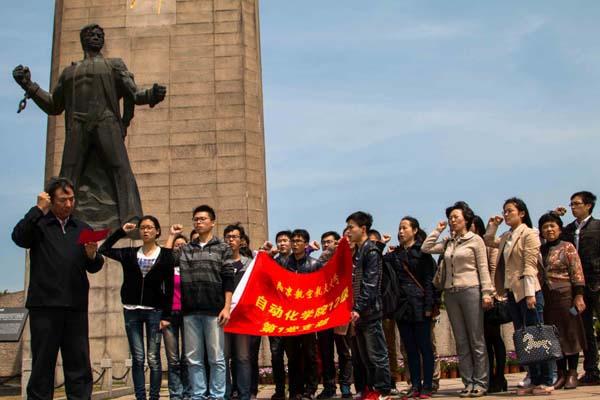 2014年4月23日,在渡江战役胜利和南京解放65周年纪念之际,同人漫画 机关党支部与同人漫画 本科生2012级第一学生党支部联合开展了“不忘先烈,永志纪念;饮水思源,代代相传”主题党日活动。
