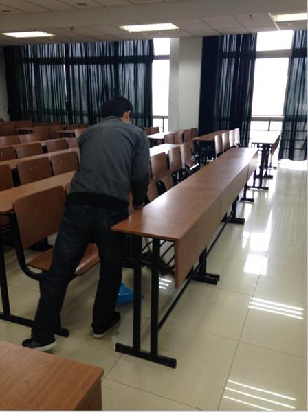 4月22日到4月27日,每天中午志愿者们12:10便到达了1号楼大厅,等待分配相关工作。一是清洁整理桌子里的垃圾,二是打扫清洁教教室地面。平时在大家眼中很轻松的后勤工作,当志愿者们做起来的时候,却发现这也是很辛苦的,因为打扫得都是卫生死角,而且是一个又一个的教室。但是每个志愿者都觉得这是一件十分有意义的事,整个活动过程大家都觉得很充实。