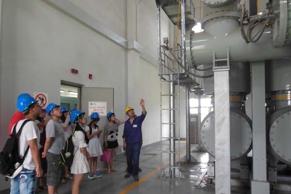 火力发电厂生产主要为煤,水,蒸汽的循环。“火力发电的成本中,燃煤费占了75%,所以选择优质煤是提高效率的最重要的途径。”工程师重点讲解了各个过程是如何提高发电效率的,并介绍了各种提高废物利用率的方式,告诉成员们,如今火力发电也在逐步向高效、清洁转变。