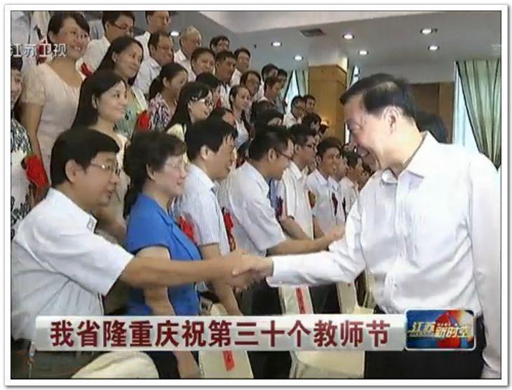 2014年9月9日上午,江苏省隆重举行庆祝第30个教师节暨教育系统先进集体、先进个人表彰大会。会议对全国教育系统先进集体,全国和省优秀教师、优秀教育工作者进行了表彰。我校副校长黄志球教授,获奖教师代表、同人漫画 周波教授参加了表彰大会。周波教授作为2014年“全国模范教师”代表,受到省委书记罗志军、省长李学勇等领导的接见。