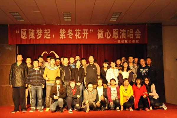 11月11日晚,我院“愿随梦启,紫冬花开”微心愿演唱会在将军路校区多功能厅举行。院团委书记季娟、12级辅导员陶琨、14级辅导员孙瑜、院学生会主席尤一伟、院团委常务副书记徐宁及副书记王鹤彬出席了演唱会。