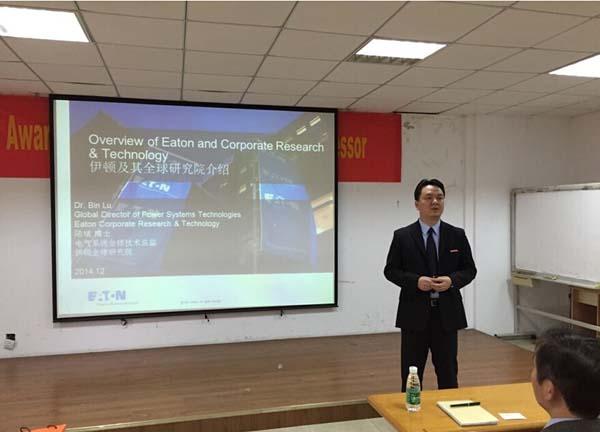报告会上,陆斌博士首先对伊顿公司全球研究院进行了介绍,美国财富500强伊顿公司是一家全球领先的动力管理公司,拥有诸多工业领域的全球领先技术,致力于帮助客户更有效、更安全、更合理地利用电力、流体动力和机械动力。顾亦磊博士对伊顿公司在电力电子与电力传动前沿技术上的研究做了介绍,主要包括为电力系统提供输配电、电源质量和控制产品及服务,为工业设备和工程机械提供液压动力元件、系统和服务,为商用和军用飞机提供燃油、液压和气动系统;为中型和重型卡车提供智能动力传动系统;最后,参加报告会的老师和研究生就报告内容和两位博士进行了热烈交流,在座的师生都从中受益匪浅。