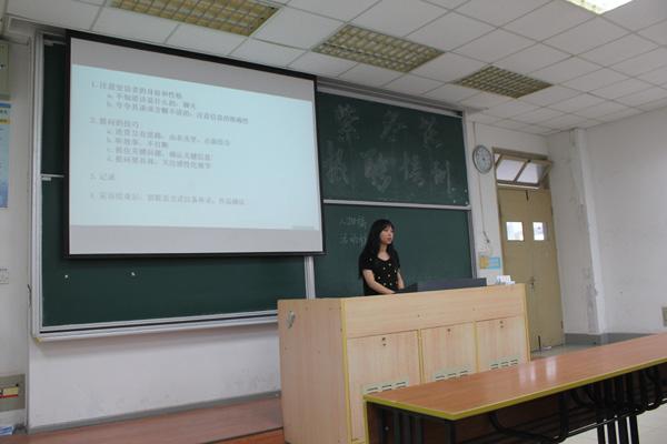 接着,王快快分别阐述了“如何能吸引媒体关注”、“把握各大媒体的侧重点”、“优秀图片报道”等内容。她援引“南航学生暴走南京城”、“绘《明城墙小吃地图》”等宣传材料具体解释了需要用亮点与矛盾点来吸引媒体,又讲述了传统媒体与新媒体的区别,讲解了宣传员在活动中联系媒体、撰写新闻稿、记录音视频的方法。“兵马未动,粮草先行”,宣传有道,对活动的有效开展十分有利。