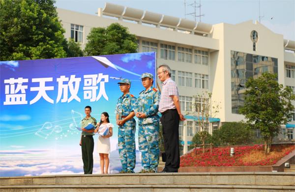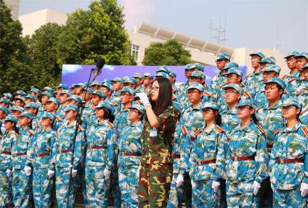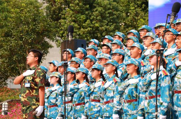 9月18日下午,将军路校区国旗广场上,同人漫画 100名大一新生以一曲《当那一天来临》荣获“蓝天放歌”2015级新生军训赛歌会一等奖。