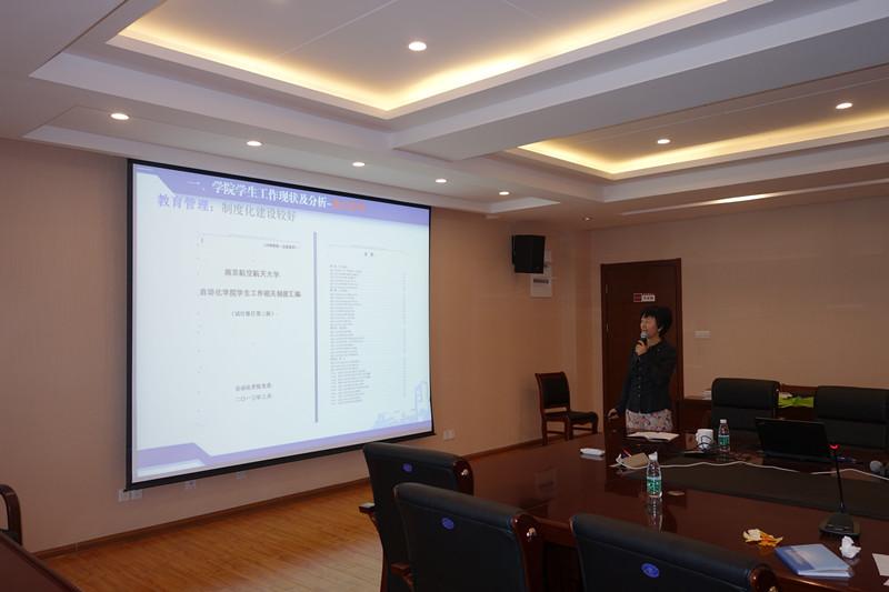 25日下午,研讨会进行第二部分内容,学院领导班子成员依次进行汇报。院党委书记刘建成同志介绍了学院制度建设的规划,从顶层设计强化制度导向,深化综合改革,力争在“十三五”期间通过建立完善的激励机制激活全院师生活力、共谋学院发展;院长姜斌同志介绍了学院综合改革的发展思路和规划,提出了学院“十三五”期间的发展目标和要求,并重点分析了学院现有人才工程和学科建设的现状、困难以及发展思路;副书记沈伯秀同志从学生绩点、就业等各类数据图表入手,全面剖析学生的思想学习生活状态,强调要继续突出科创特色培养高水平专业人才;副院长赖际舟同志深入分析指出当前研究生招生形势,进一步提出学院研究生培养的思路和举措;副院长王晓琳同志结合专业认证工作突出强调本科基础教学的重要性及发展方向;院长助理宋晓峰、张之梁同志也结合业务工作提出了深化学院综合改革的思路和建议。