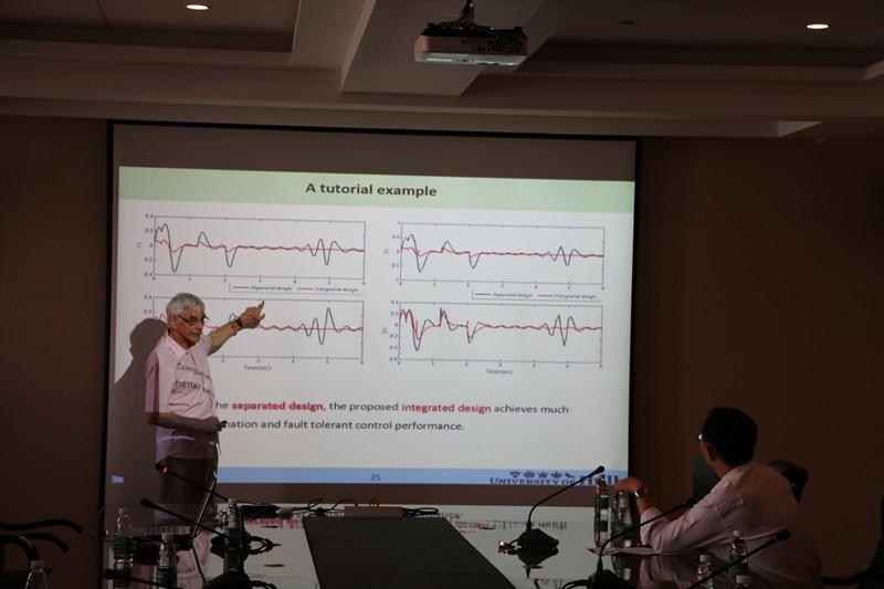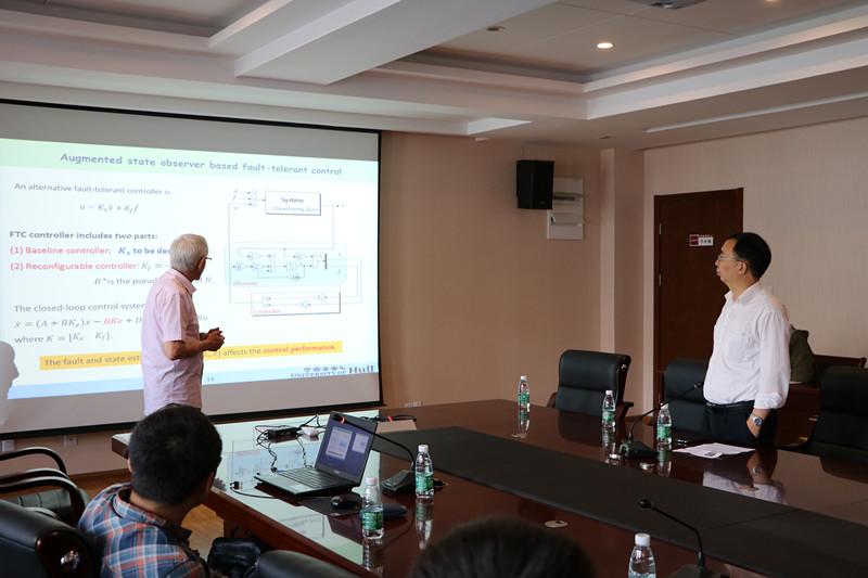上午,Patton教授在同人漫画 行政楼四楼的学术报告厅作了题为“Research on Integrated design of fault estimationand FTC for uncertain systems”的学术报告。报告会由自动化院院长姜斌教授主持,自控系部分师生参加了报告会。Patton教授首先很愉快地向我们介绍了这次报告的内容,其次,详细介绍了其在容错控制方向上的一些新的研究成果。最后,Patton教授认真地解答了每位师生提出的疑问,并对课题研究前景与挑战作了展望。整场报告会从工程应用的角度极大地拓宽了我们的视野,活跃了我院的学术氛围。报告会历时一个半小时,在热烈的掌声中圆满结束。
