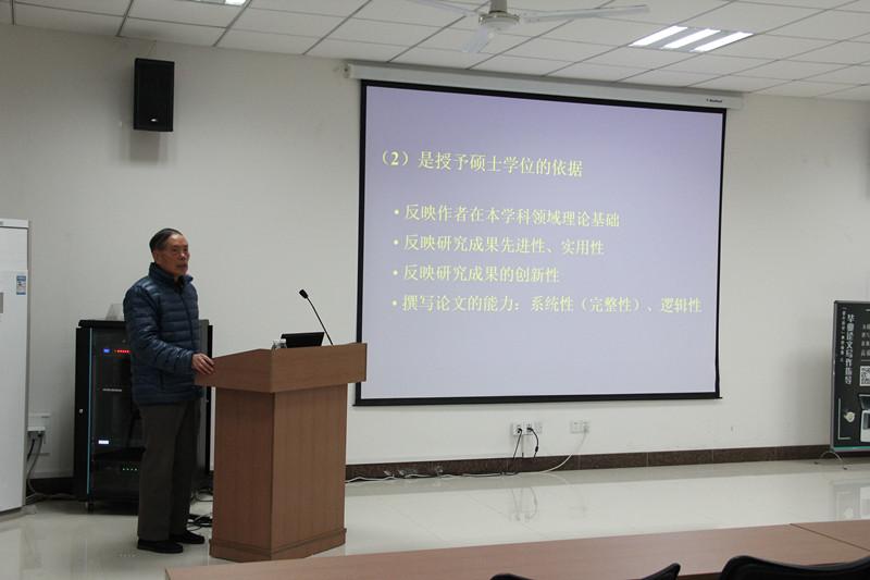 讲座开始,主持人简单介绍了“紫冬话访”系列讲座活动以及本次讲座的主题。随后,于盛林教授就毕业论文撰写的具体细节进行了深入的指导。从论文格式的基本要求,到论文内容的创新内涵;从学位论文的基本框架,到公式图表的符号编辑,于教授都进行了细致周到的讲解,于教授清晰的逻辑、详细的讲解、幽默的语言激发了同学们的认真思考。作为具有多年审查论文经验的老专家,于教授对审核过程中的细节及注意事项熟稔于心。在讲座尾声,于教授和同学们展开深入的交流,耐心地解答同学们提出的问题。听完讲座,同学们以热烈的掌声感谢于盛林教授为大家做的精彩报告,纷纷表示会以严谨认真的态度对待研究工作,以实事求是的态度评价研究成果,将完成毕业论文看作是创作与提升的过程。