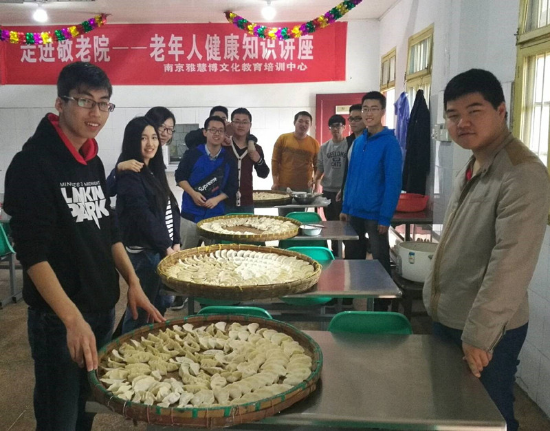 2016年5月22日上午,同人漫画 0313204班“微爱”志愿服务团队本学期第三次来到了江宁东山敬老院,在这里,同学们为老人包饺子,陪他们聊天。