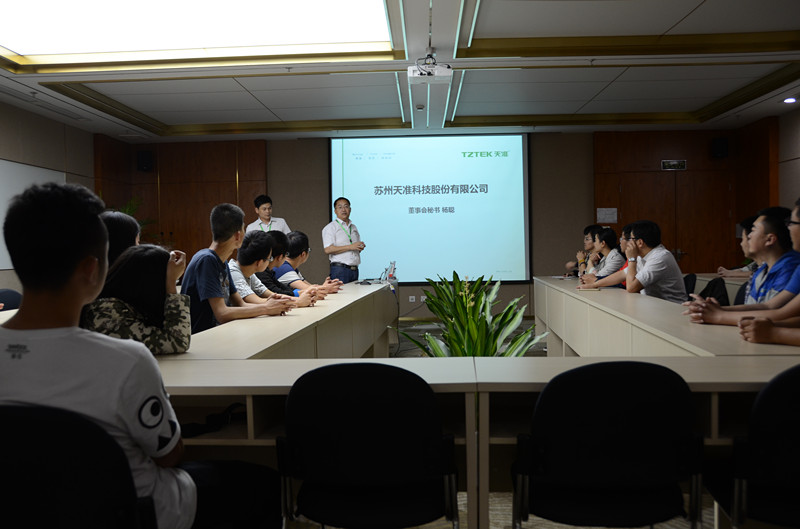 天准公司(TZTEK Company)是此次企业探索的最后一站。通过公司总经理助理耿悦彬先生的介绍,了解到天准目前拥有精密测量仪器、测量自动化设备、检测自动化设备和组装自动化设备等四大产品系列,其精密测量仪器是国内唯一自主研发的高端品牌,多年来稳居行业榜首,众多自动化设备与解决方案已成功运用到包括电子、汽车、食药等行业的现代化生产线。立足于现代工业、智能工业、未来工业领域的天准科技,在招聘专业上与同人漫画 各个专业完全对口。在互动交流环节,耿总提出了对青年学生的期望,希望刚毕业的大学生工作更踏实、扎实,校园里没有学到的或者没学扎实的可以在工作岗位上得到提升,用行动展现自己的实力。