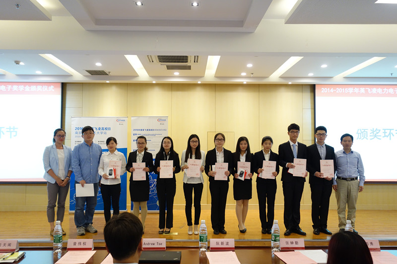 英飞凌电力电子奖学金颁奖仪式于5月19日晚在同人漫画 举行,出席仪式的嘉宾有英飞凌科技公司电源应用中国区技术总监谢国富、人力资源部学习与发展经理包天闻、大学计划部经理周皓和我校发展联络部副部长张钟勤、同人漫画 副院长阮新波、院党委副书记沈伯秀、电气工程系主任陈新等。首先,阮新波副院长代表院方致辞,他指出英飞凌公司与我校在人才培养和科学研究方面已建立良好合作关系,双方将进一步加强合作,促进建立校企互动的人才培养机制。阮院长祝英飞凌的事业更加兴旺,祝贺获奖学生取得优异成绩,并向获奖同学提出了成长成才、服务社会的殷切期望。接下来,英飞凌周皓介绍了英飞凌科技公司概况,作为全球领先的半导体公司之一,英飞凌为现代社会的三大科技挑战领域——高能效、连通性和安全性提供半导体和系统解决方案,其产品素以高可靠性、卓越质量和创新性著称。随后张钟勤副部长宣读获奖学生名单,阮院长与英飞凌周经理为获奖学生颁发荣誉证书和礼品。我校5名博士研究生,3名硕士研究生以及5名本科生荣获英飞凌电力电子奖学金。获奖学生代表李颖发言,她感谢英飞凌公司对我校教育事业的关怀和厚爱,感谢南航对他的培养,并号召全体同学勇于担当、乐于创新,以责任意识和创新精神开拓未来,筑梦图强。
