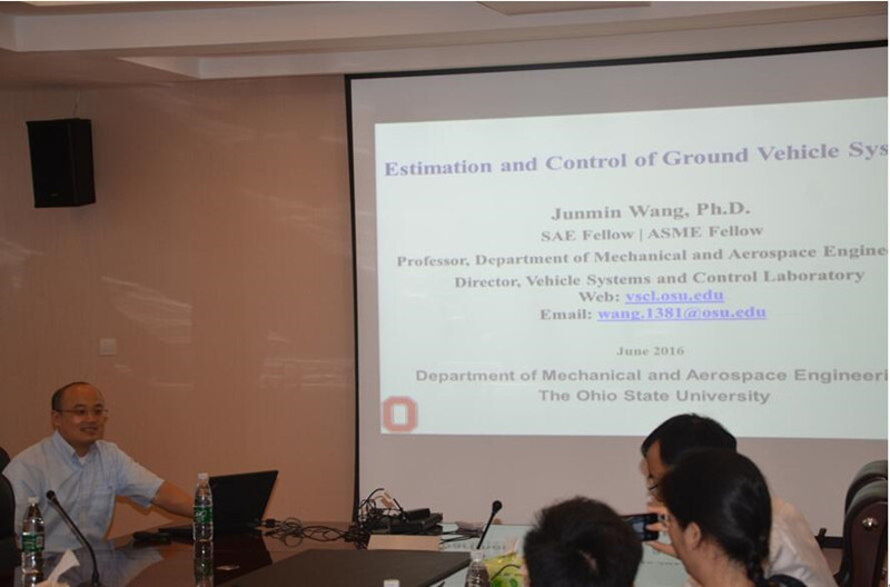 2016年6月21日上午,美国俄亥俄州立大学王俊敏教授应邀在江宁校区同人漫画 4楼会议室,做了“Estimation and Control of Ground Vehicle Systems”为题的学术报告。会议由同人漫画 院长姜斌教授主持,同人漫画 部分师生参加了学术报告。