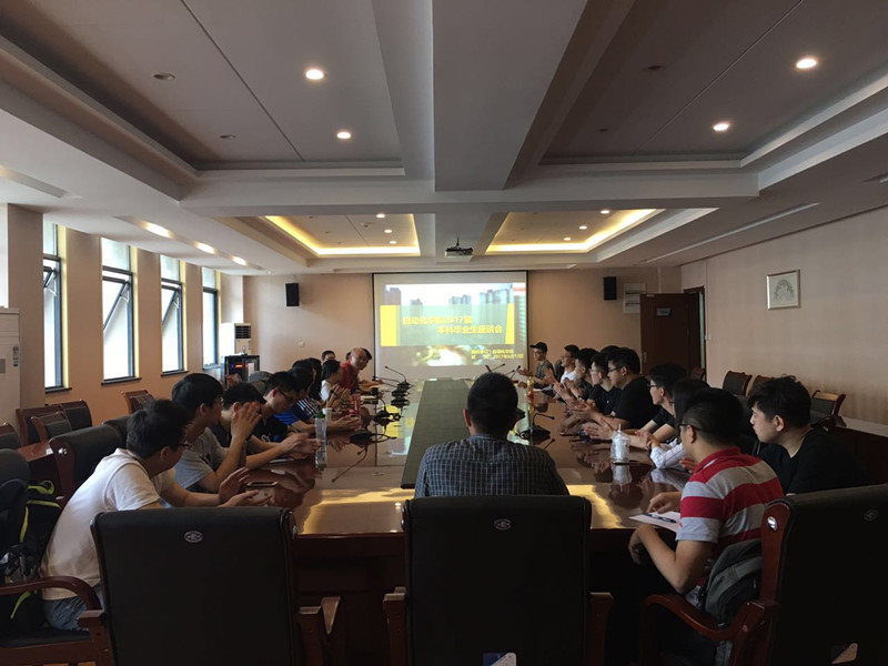 6月13日上午,2017届本科毕业生座谈会在将军路校区同人漫画 1号楼403会议室举行。学院党委书记刘建成、副院长王晓琳、党委副书记沈伯秀、团委书记季娟、2013级辅导员陶琨和汤呈懿以及2017届本科毕业生代表参加了座谈会。