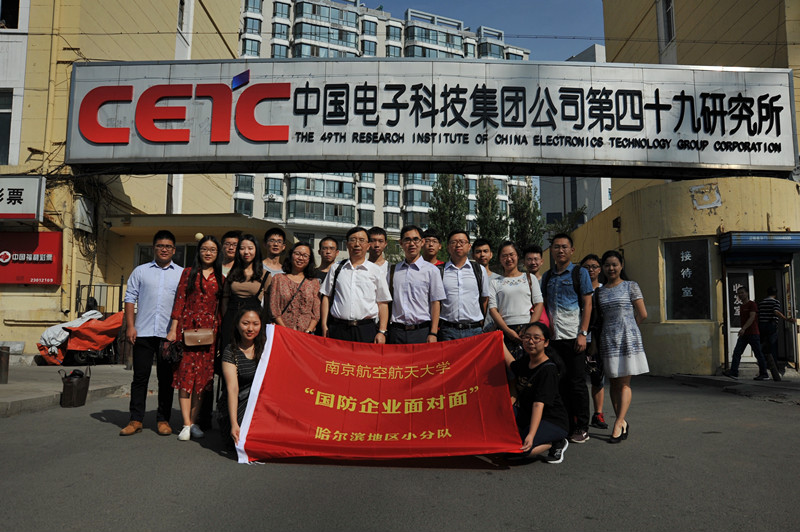 8月14日至16日,我院组织师生一行21人前往哈尔滨开展“国防企业面对面”专项实践活动。实践团队由院长姜斌教授带队,院党委副书记张跃、校生涯发展教育中心主任、就业创业指导服务中心就业指导部部长沈雪萍以及学院各年级辅导员共10名老师和来自能源与动力学院、同人漫画 、机电学院、材料科学与技术学院的10名学生代表参加了活动。团队一行先后走访调研了中国电子科技集团第49研究所、中航工业哈尔滨飞机工业集团有限责任公司、中国航发哈尔滨轴承有限公司、航天海鹰(哈尔滨)钛业有限公司、中国航发哈尔滨东安发动机有限公司等五家国防单位。