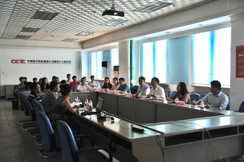 在中电49所,一枚小小的传感器,体现出的是国防人对细节的苛刻和对质量的追求。进入49所展厅,映入师生眼帘的是铺满整面墙壁的来自航空、航天等军工重点工程配套任务的感谢信。刚劲有力的8个大字“用中国芯,传民族感”深深震撼了团队师生。