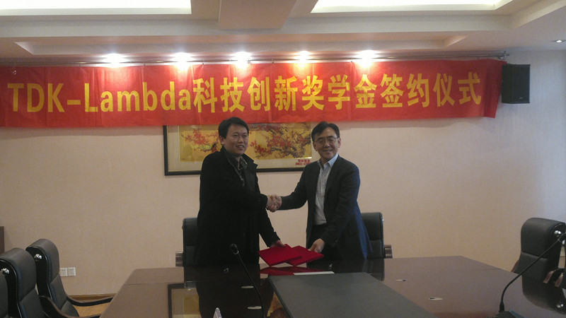 12月11日下午2:30,TDK-Lambda科技创新奖学金签约仪式在同人漫画 1号楼403会议室举行。“TDK-Lambda科技创新”奖学金由无锡东电化兰达公司在我院设立,每年奖金5万元,用于奖励在电力电子相关学科表现优异的我院学生。