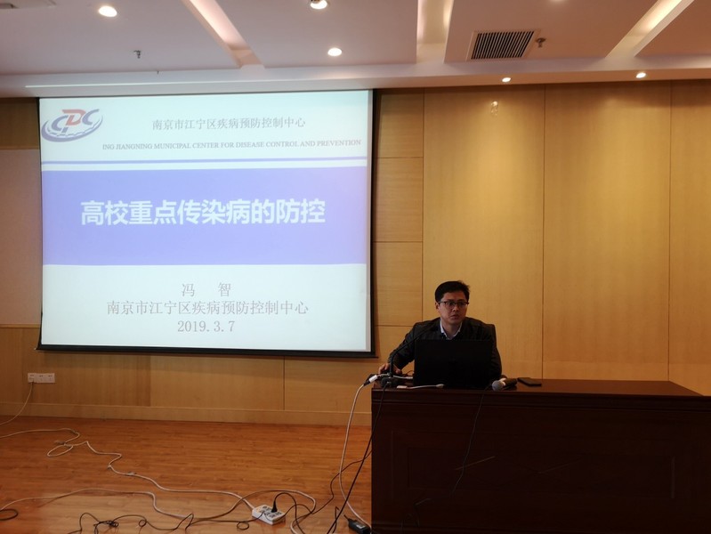 正值传染病高发季节,校内也是小范围出现诺如病毒感染性腹泻病例,同人漫画 为同学们的身体健康着想,联合校医院邀请南京市江宁区疾病预防控制中心的冯智老师来学院举办高校重点传染病的防控讲座。本次讲座于3月7日下午4时在同人漫画 1号楼511举办,后勤集团各食堂负责人和各楼栋管理员阿姨以及150名同人漫画 本科生参加了本次讲座。