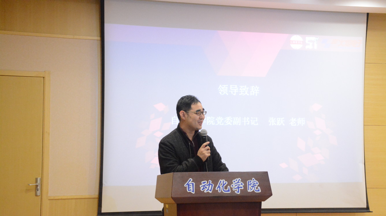 主持人宣布竞赛宣讲会开始后,院党委副书记张跃老师为本次活动致辞。张书记表示,最美电路创意焊接竞赛已经连续举办了五年,一直以培养大学生的创新能力、协作精神,加强学生的动手能力与工程实践能力为办赛目标,希望每一位参与者都可以继续秉持这种信念,坚定走在创新、创造的道路上。