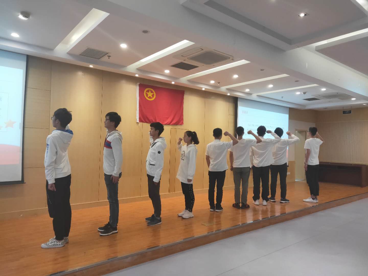 2019年4月28日下午四点,同人漫画 举办“新青年与五四运动”素养公开课暨新团员入团仪式,同人漫画 团委书记刘斐文、2017级本科生辅导员侯新闻、2018级本科生辅导员杨兴旺、汪明锐以及各班班长及团支书参加了本次活动。活动初始,学院为8名新入团团员举办了入团仪式,老团员为新团员佩戴了团徽并带领新团员进行了宣誓。