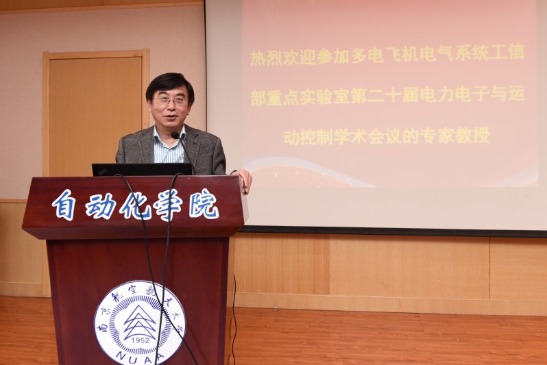 随后进行了专家的特邀报告。国家杰出青年基金获得者、“长江学者”特聘教授、哈尔滨工业大学工业技术研究院院长李立毅教授做了“平流层太阳能飞行器驱动电机系统”报告、山东大学电气工程学院副院长王秀和教授做了“永磁电机轴电压研究”报告、合肥工业大学张兴教授做了“基于虚拟同步机的光伏发电系统及控制”报告、中航工业南京机电液压公司肖喆总师做了“电驱动开发的方法和工具”报告。 重点实验室专家Adrian Ioinovici教授做了“Hybrid Switched-Capacitor DC-DC Converters for Applications Supplied by Green Sources of Energy”报告,吴红飞教授做了面向低频脉冲负载三相交流供电系统的高能效电能综合治理技术报告、于立博士和朱小全博士分别作了“多电飞机组合动力装置高速双凸极高压直流起动发电技术研究”和“开关升压阻抗源变换器拓扑构造及其分数阶特性研究”相关报告。
