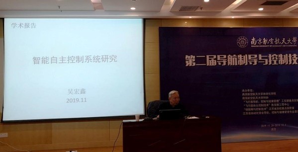 吴宏鑫院士做了《智能自主控制系统研究》的报告。吴院士结合自身在航天控制领域数十年的科研实践经历,介绍了智能控制的相关研究及应用成果。报告内容既包括智能控制的基本思想,也涵盖了智能自主控制系统的能力、目的、任务、结构、方案、算法、研究规划与实际应用等多个方面内容。