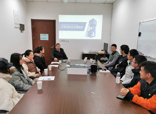 12月23日下午1点45分,由电子技术中心林雅洁、游霞老师组织的,王友仁教授和曾庆喜副教授出席的大学生职业生涯规划人物访谈会在同人漫画 2号楼206会议室拉开帷幕。
