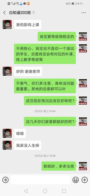 很多班级就疫情期间宅在家能做些什么展开了激烈讨论,班主任们提醒同学们多陪伴家人,多发展兴趣爱好,少玩游戏多锻炼,同时积极引导大家通过这次疫情多多思考,例如信仰与担当、责任与行动。