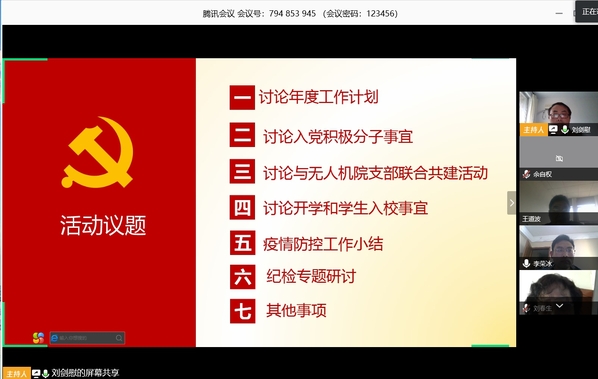年度工作计划、入党积极分子、与无人机院支部联合共建、开学和学生入校等活动和事宜进行了讨论。