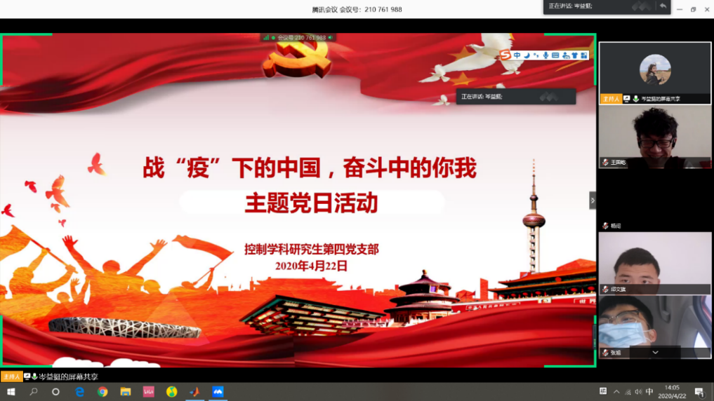 控制学科研究生第四党支部开展了一场以“战‘疫’下的中国,奋斗中的你我”为主题的线上党日活动,支部党员、发展对象、积极分子共计41人参加了本次活动。该党支部由学院教职工张玲老师担任支部书记,本次活动参与人员均为导航研究中心研究生。