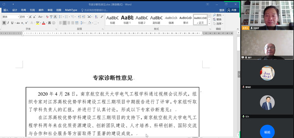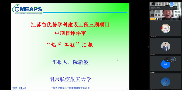2020年4月28日上午,同人漫画 组织专家对江苏高校优势学科建设工程三期项目电气工程学科进行了中期评审。评审会通过视频会议形式进行,评审专家组组长由河海大学鞠平教授担任,专家有浙江大学何湘宁教授,西安交通大学杨旭教授,东南大学花为教授和中国矿业大学陈昊教授。同人漫画 电气工程系阮新波教授、胡海兵教授和曹瑞武副教授参加汇报。