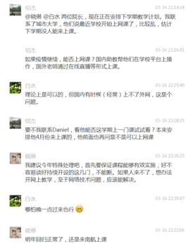 到了3月份,国内疫情得到了缓解,但英国等国家的疫情却变得更加严重,下学期外教赴南航开设国际课程的可能性也变得渺茫。面对第二次的危机,校内相关部门与外方教师多次沟通,决定重启本学期国际课程教学,尝试采用线上教学的形式开设。
