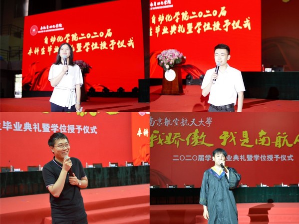 毕业生代表、保研本校的206班张绮瑶代表同人漫画 全体2020届毕业生发言。她回顾了在三院学习的四年时光和成长历程,代表全体毕业生表示一定为祖国的航空航天事业贡献出南航自动化人的一份力!