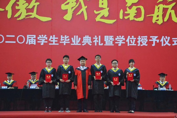 最后,进行了隆重的学位授予仪式,校领导、学院领导、院长助理和各系主任为全体毕业生颁发学位证书并拨正流苏。
