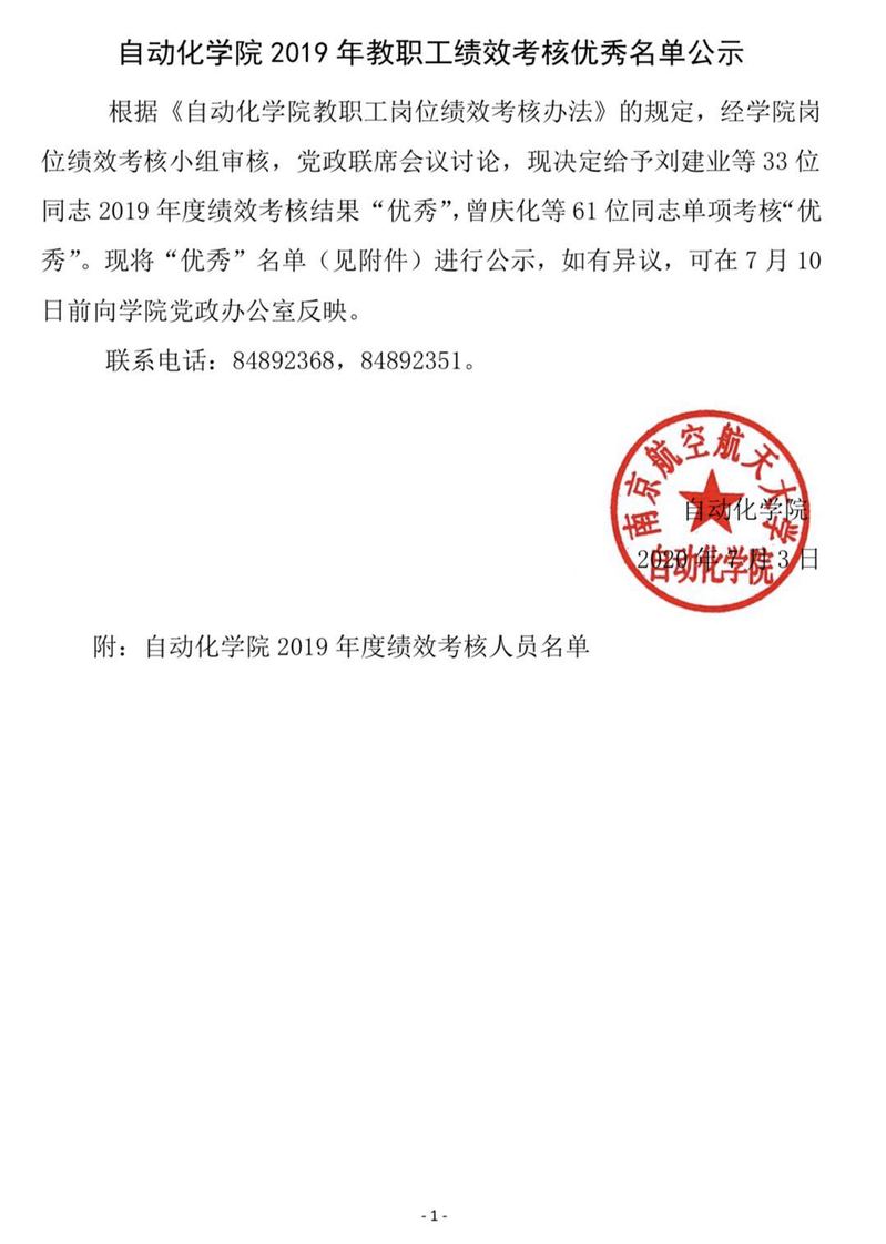 同人漫画 2019年教职工绩效考核优秀名单公示