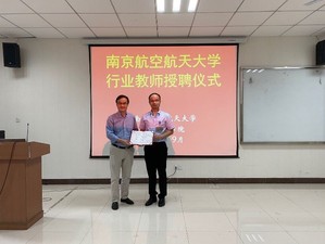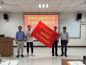 然后,宋晓峰副院长为航空工业南京机电液压工程研究中心王永青研究员颁发行业教师聘书,并为2019级卓越班授予班旗,与2019级卓越班同学和老师合影。