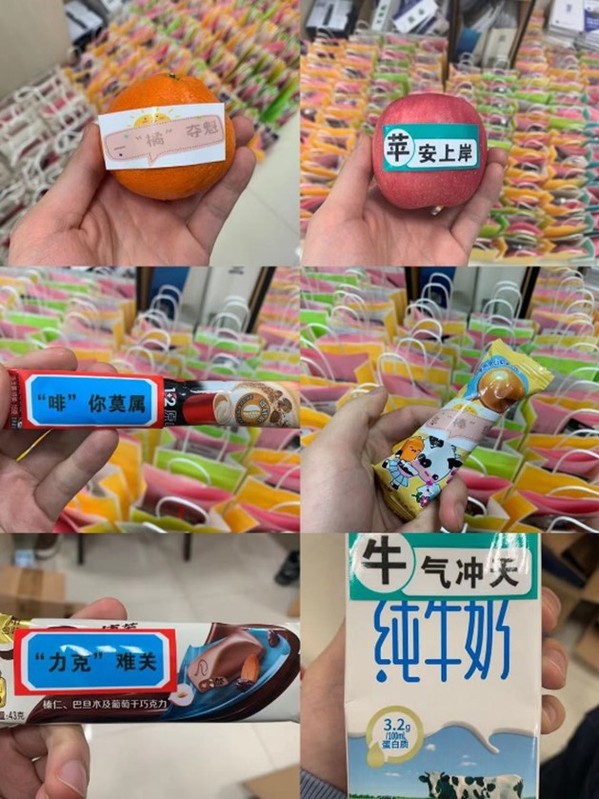 老师们亲切询问同学们近期学习状况,叮嘱大家考前注意身体,要放平心态、积极迎战考研,有困难及时向学院提出,学院会尽力帮助同学们解决问题,同时送上了学院为考研学子们精心准备的慰问礼品袋,其中包含中性笔、涂卡笔、橡皮等必备文具、《致考研学子的一封信》、以及牛奶、巧克力、水果、咖啡等包含“牛”气冲天、“力克”难关、“苹”安上岸的美好祝愿的纪念品。