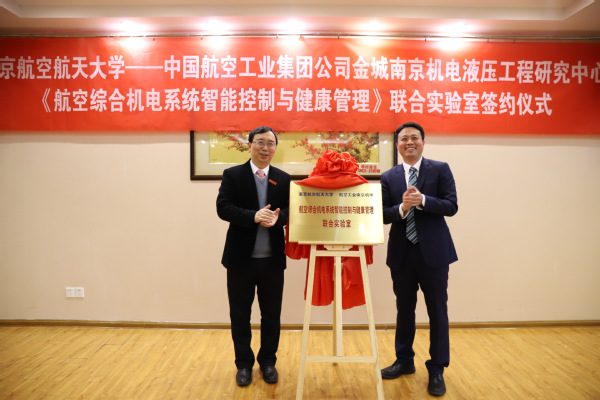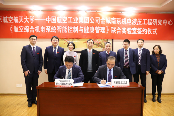 3月17日,我校与中国航空工业集团公司金城南京机电液压工程研究中心(以下简称航空工业南京机电)在将军路校区同人漫画 举行“航空综合机电系统智能控制与健康管理”联合实验室的签约仪式。航空工业南京机电副总经理、总工程师陈丽君,人力资源部部长王海波,液压与作动系统部部长葛益波,环控系统部部长杨昌宝;我校副校长姜斌,发展联络部部长兼党政办副主任李君,科学研究院副院长顾冬冬,同人漫画 党委书记李文雷,同人漫画 院长江驹及校企双方有关负责同志出席签约仪式。江驹和陈丽君分别代表双方签署联合实验室协议;姜斌和陈丽君为联合实验室揭牌。李文雷主持签约仪式。