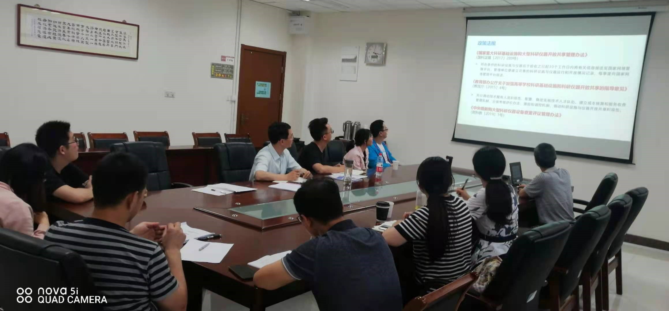 会上阎志军处长详细解读了上级部门和我校关于大型仪器设备开放共享的政策制度,结合目前我校大型仪器设备共享工作推进情况,对标国家考核的目标和要求,详细分析了我校在大型设备开放共享中存在的问题和不足,并对后续的工作进行了部署且提出了具体要求。