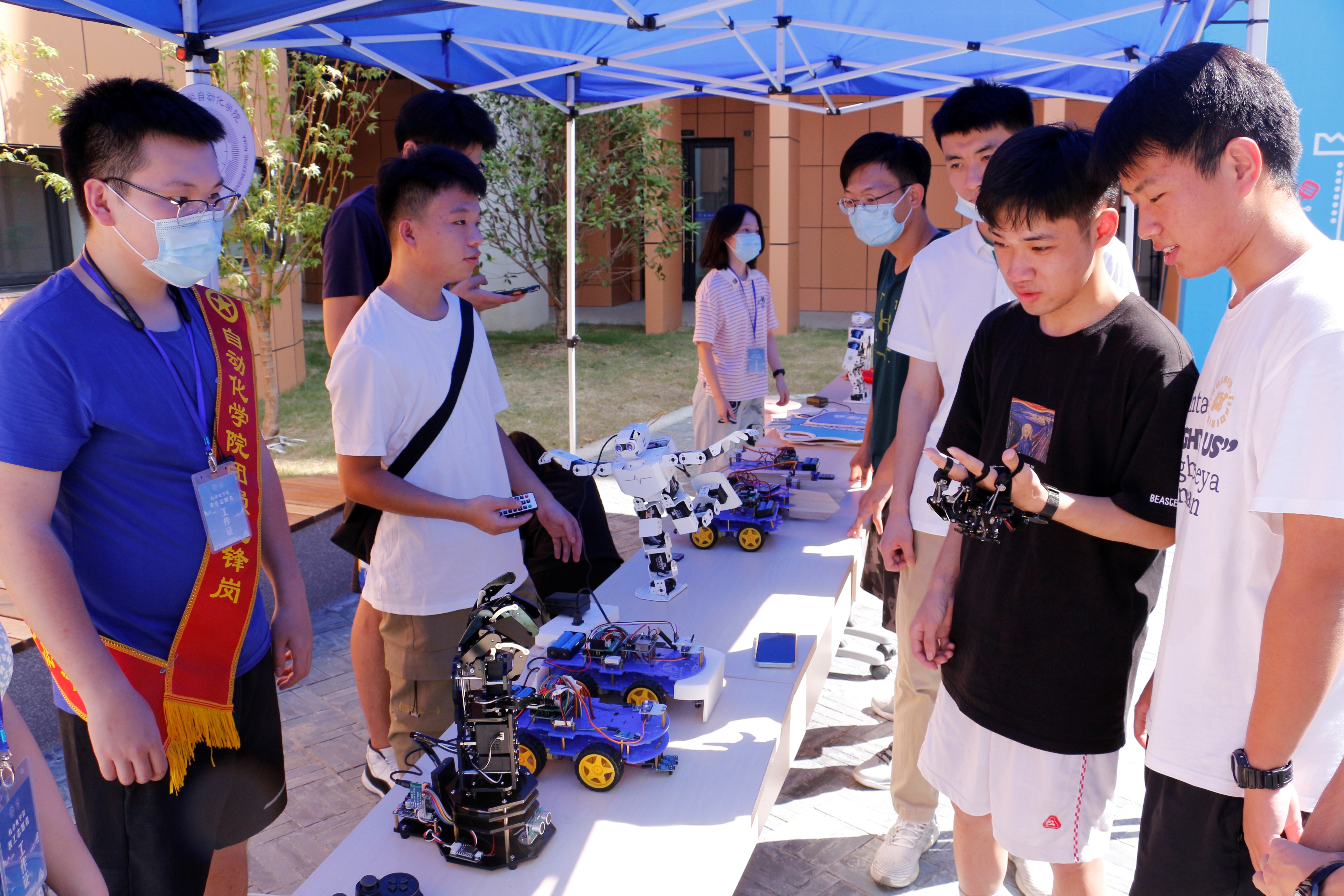 为帮助新生更好地适应大学生活,学院自9月16日起开展“云游校园”、“新生见面会”、“学长学姐经验分享会”等九场线上活动,带领新生熟悉大学学习、生活节奏,帮助他们了解未来发展,做好规划。迎新现场,增设学院本科生创新计划训练展板、学生自主研制机器人等装备向大一新生展示,引起了众多新生的驻足与关注,激发了他们科创的热情和动力。