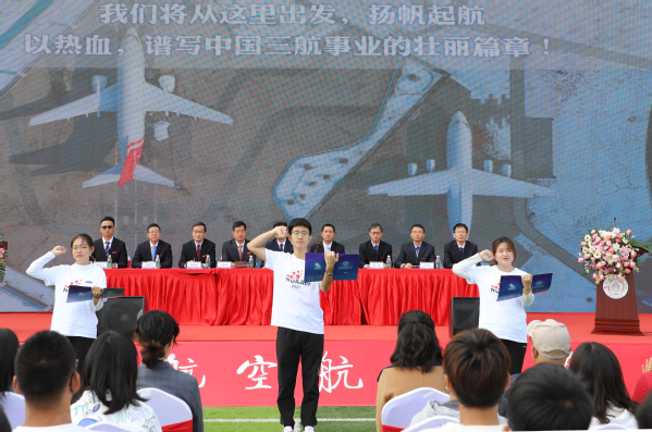院领导给学生代表佩戴上了承载着学校和学院美好期望和殷切寄托的同人漫画 校徽,从此,又一代南航人将秉持着“团结、俭朴、唯实、创新”的思想传承,在处世中秉承“智周万物,道济天下”的校训,在学习上发扬“严谨、务实、求真、创新”的院风,在研究中践行“格物致知,进德修业”的院训,展现出“强国一代”的奉献与担当!