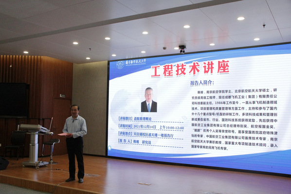 12月10日,成都飞机工业(集团)有限责任公司科技委副主任、我院行业教师韩维给自动化专业卓越班的同学带来了一场题为“适航管理概论”的主题讲座。由于疫情影响,本次讲座采用天目湖校区和将军路校区线上线下结合的形式举行。同人漫画 院长江驹教授、通用航空与飞行学院院长王勤教授、同人漫画 副院长王晓琳教授、课程负责人张绍杰老师及同人漫画 、民航学院、通用航空与飞行学院师生参加了本次讲座。讲座由江驹院长在天目湖校区主持。