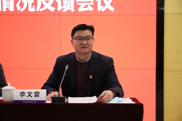 根据学校党委巡察工作领导小组部署,2021年12月24日,党委第一巡察组在同人漫画 召开了巡察反馈会。校党委副书记、纪委书记杭育新,纪委办主任廖元元,第一巡察组组长张新明、副组长燕雪峰、副组长张林、联络员卢佳妮及同人漫画 全体教职工参加会议,同人漫画 党委书记李文雷主持会议并作了表态讲话。