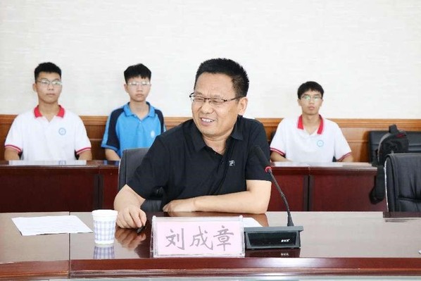 刘成章代表郸城一高对南航同人漫画 一行表示诚挚欢迎,他指出近年来我国航空航天事业的迅速发展,离不开南航这样的优秀高校在航空航天人才培养方面作出的巨大努力,并表示要加大对南航的宣传力度,鼓励更多的优秀学子报考南航。希望与南航能在为党育人、为国育才的道路上加强合作,为我国航空航天事业发展作出应有的贡献。他介绍了郸城县第一高级中学这所始建于1951年9月的高级中学,是全国文明校园、河南省示范性普通高中。自2018年起,学校600分上线人数和一本上线人数连续五年位居河南省第一, 2022年高考考生中,预计有800人超过600分,一本上线人数超4000人。