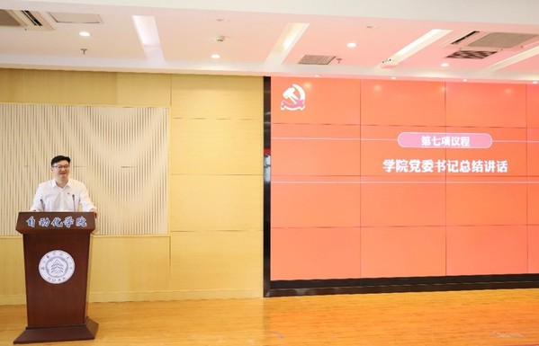 会议还邀请了党支部书记代表和青年党员代表进行了汇报交流。自动控制系党支部书记曾庆化同志做了《凝心聚力,顺应变局,共创美好未来》专题汇报,从内部交流、外部互动、传承文化和学科积淀四个方面分享了党支部发挥战斗堡垒作用、凝聚人心合力保障院系事业快速发展的优秀做法,并对如何从党史中汲取精神力量助推未来建设发展,进行了全面而深入的思考。