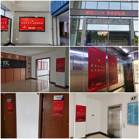 氛围营造方面,同人漫画 通过布置“喜迎二十大 奋进新征程”主题海报、电子屏、学院网站等在学院内营造了迎接党的二十大胜利召开的浓厚气氛。